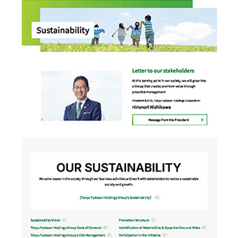 To realize our ideal vision of becoming a corporate group that continues to create value, Tokyo Fudosan Holdings Group has solved social issues through our business activities and continuously taken up the challenge of creating unique value. Positioning both financial and non-financial matters as important management issues, we will work on six themes (materialities) closely related to the SDGs to realize a sustainable society and growth.